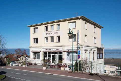 - Breakfast / Coffee Light refreshments are available at the Evian Express hotel in Evian-les-Bains, and the hotel bar has a terrace.